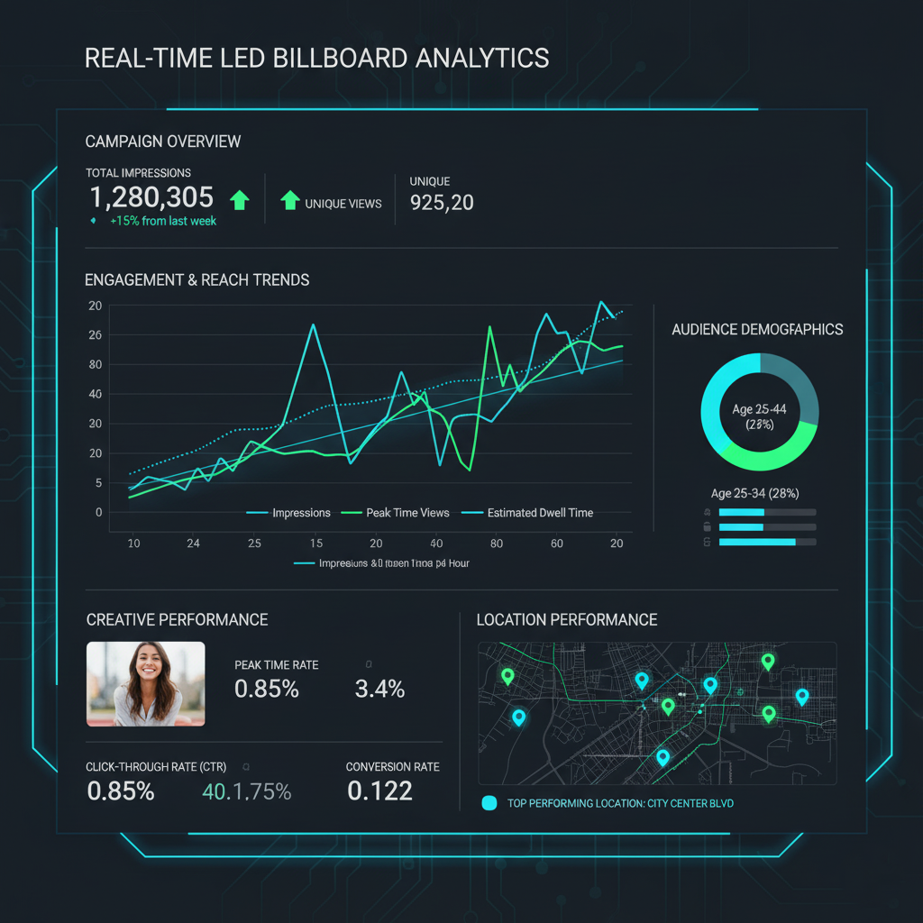 Our data shows LED billboard advertising reach generates 400% more engagement than static counterparts in the same location. People look up. People remember.